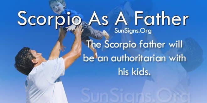 The Scorpio father characteristics show you will be an authoritarian when dealing with your child. Too much anxiety about your child will limit the independence of the child. The child will find it hard to comprehend the true intentions of his father because of his strict behavior.
