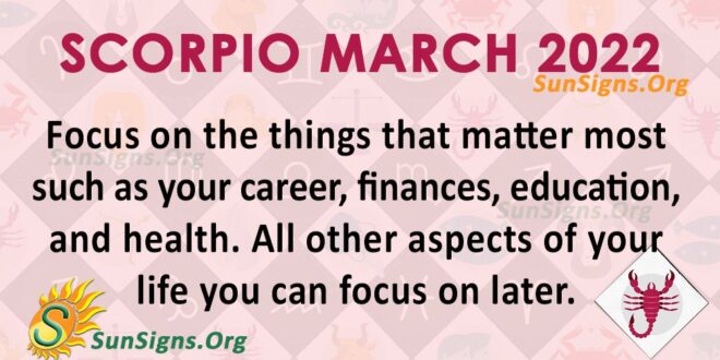 The year 2022 will give you room to think about what you want to achieve in your life. This is a period of self-contemplation. Scorpio March 2022 Horoscope wants you to find pleasure in the little things in life because they make you the person you are.