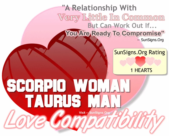 Scorpio Woman Compatibility With Taurus Man:- Both Taurus and Scorpio are fixed signs and they are set in their ways. Scorpio is a water sign and Taurus is an earth sign. And although sometimes opposites attract, it may be difficult for these two to come together. Taurus males will find the mysterious Scorpio woman to be withholding and secretive. And they may also fight over control and this will be hard for either one to give up. When they argue, neither one will back down, it may hard for these two sun signs to ever forgive and forget. Continue Reading…