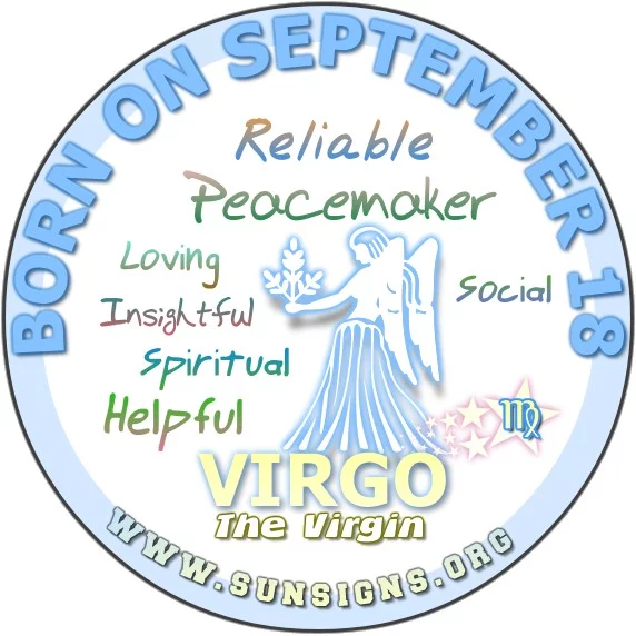 The September 18th birthday means you have a lifestyle that matches an artistic and social Virgo. Also, you can be a spiritual individual with a lot of insight and focus on supernatural things.
