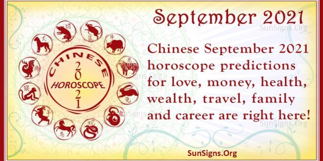 Take a look at the September Chinese Horoscope 2021 from SunSigns.Org. These monthly horoscopes will give you exact information about your life in the coming month. Find out how your love life, relationships, career, family, finance, and health will be in September 2021. Get your September 2021 Chinese Horoscope right away for this month of the year of the white metal ox.