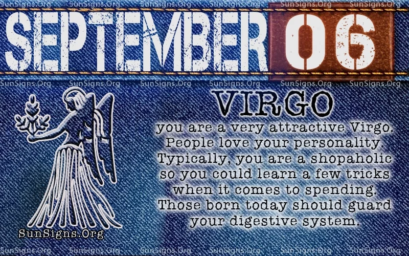 The September 6th horoscope predicts that you surround yourself with family and teach them about family traditions but, most importantly, how to become self-sufficient. If you were born today, your friends say you are outgoing and like hanging around people who enjoy the same things.