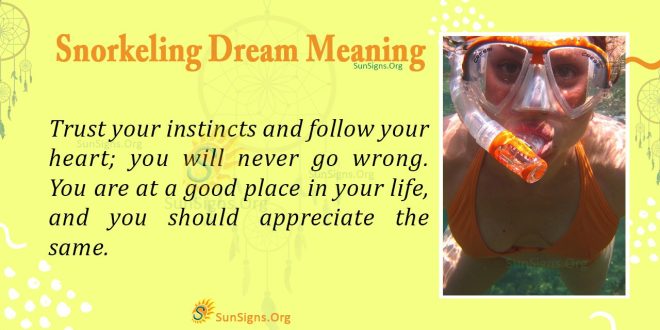The snorkeling dream symbol encourages you to explore your emotional life. Keep your emotions in check at all times.
