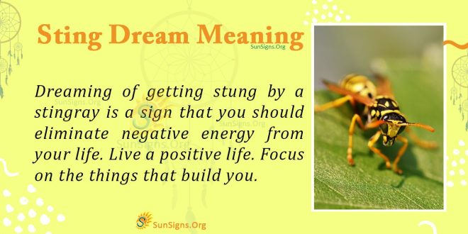 A sting in your dream means that someone will say something or you will do something that will lead to severe consequences. Ensure that you avoid people and things that trigger your emotions and feelings. Watch your actions to avoid hurting yourself and others.
