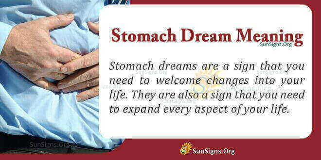 Stomach dreams are a sign that you must welcome changes in your life. They also indicate that you need to expand every aspect of your life. Do not be comfortable in the same place for long. Allow yourself to grow.