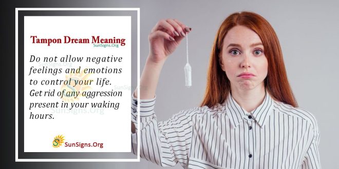 According to the tampon dream symbolism, dreaming of pulling out tampons is a sign that you should release tension. Do not allow negative feelings and emotions to control your life. Get rid of any aggression present in your waking hours.