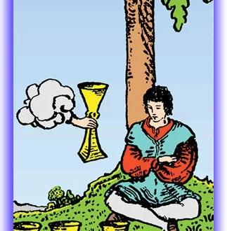 Shortly, you’ll be finding this malaise you’re trapped in, beginning to break away. It’s been a long cold winter for your creativity, and the Four of Cups tarot card will finally herald the breaking of the ice, and the waters of inspiration will flow again!
