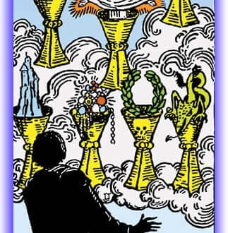 The Seven of Cups tarot card represents that portion of our journey through the Minor Arcana where our imagination is in full swing.