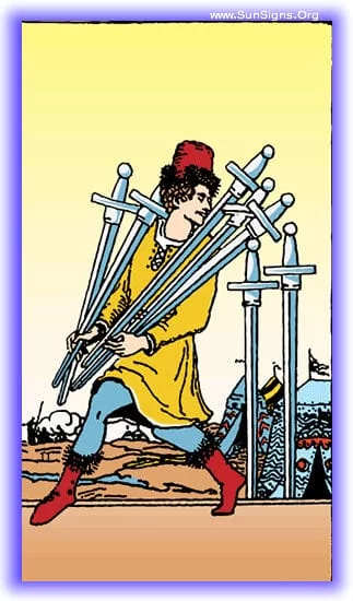 The Seven of Swords tarot card indicates the overly clever one. The heart of betrayal and deception lay within its imagery and the deliberate hiding of an act.