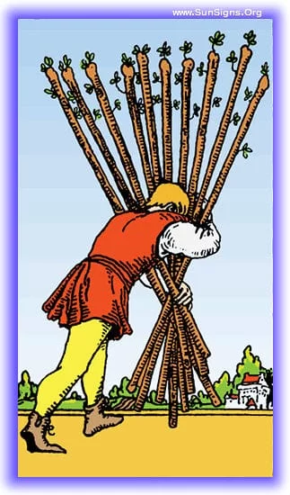 Stretching your mind to get something better is the source of inspiration to help you achieve great success. Ten Wands suggests that you start focusing on something that will help you get close to a bright future. Nothing should stop you from elevating your thoughts to something big and promising. You have to keep working hard and assume responsibility that meets your standards. Be quick in making decisions to avoid anything that might alter your progress.