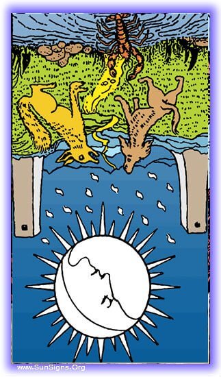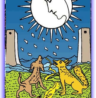 The moon is a tarot card of dualities and dawning enlightenment. It represents the point when our mind lets go of ‘normal’ conceptual reality and starts pondering the abstract points of philosophy.