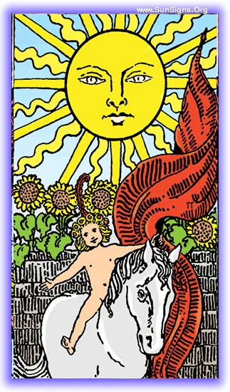 Having come out of the long dark contemplation of night and seen our way through many challenges, it is time that we come out into the sun. This tarot card represents that victory, that day in the sun.
