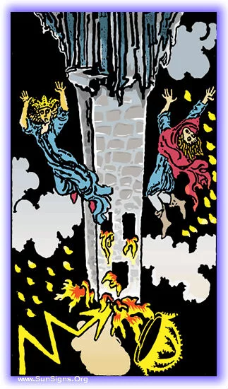 Little good comes when this card is in your tarot reading, it is always a portent of sorrow. The fire in the sky above the tower, men and women tumbling to the ground, lightning crashing through the dark sky, and the falling crown of some dethroned king, this Major Arcana card itself depicts nothing but bad omens.
