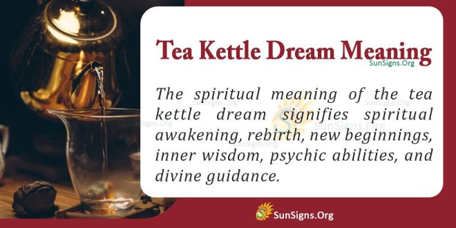 The spiritual meaning of the tea kettle dream signifies spiritual awakening, rebirth, new beginnings, inner wisdom, psychic abilities, and divine guidance. You need to make every situation in your life positive. Always focus on the things that encourage your progress.