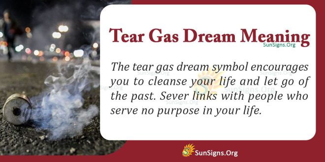 The tear gas dream symbol encourages you to cleanse your life and let go of the past. Sever links with people and things that serve no purpose in your life.