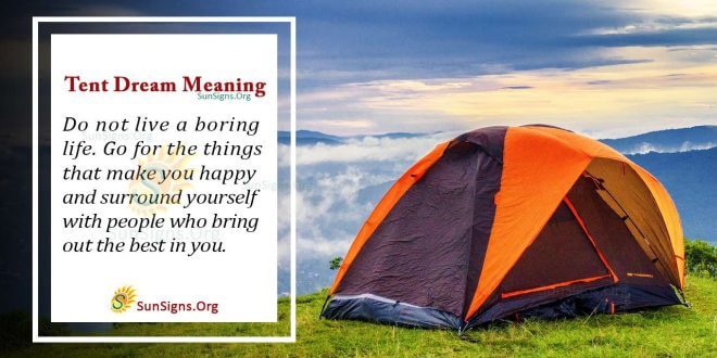The meaning of your dream in your waking life depends on its context. Dreaming of a tent means that you should explore your adventurous side. Do not live a boring life. Go for the things that make you happy and surround yourself with people who bring out your best. You might be struggling to find purpose in life. Do not worry because things will eventually get better.