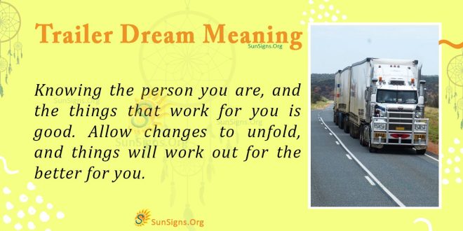Seeing a dream about a trailer is a sign that you are ready to make changes in your waking life that will improve your situation. You are open to new ideas that will enable you to thrive. You adapt to changing situations easily; therefore, keep working on what you want to manifest in your life.