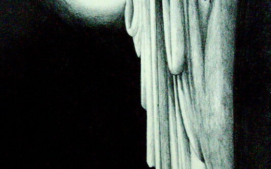 Reflecting upon inner wisdom, he retreats and is absorbed by the unfolding yogic powers. Yoga, the dynamic system of balanced inner fusion, reaching enlightenment, is the traditional self-perfection. Yoga, practiced in Hindu fashion or according to Mahayana Buddhism, from which Zen (together with impulses from Central Asia) takes its root, is meant to deliver the individual from the recurring wheel of Dharma, from the cycle of life to death to life. In a modern idiom, it may be said with Jimmy Hendrix in his song “All Along the Watchtower.”