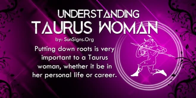 Putting down roots is very important to a Taurus woman, whether in her personal life, family life, or career. Having a practical nature allows her to analyze every aspect of a situation before choosing the most sensible path. She does not want to bother with frivolous details that offer nothing of value to her life, and she will take as much time as she needs to determine the right course of action. Patience is a virtue with this woman.