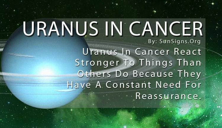 In astrology, Uranus is associated with authority and publicity, and you are not one for that. Uranus in Cancer meaning reveals that to make it in life, you need to be aggressive and open to change. Focus on the things that will lead to your growth.