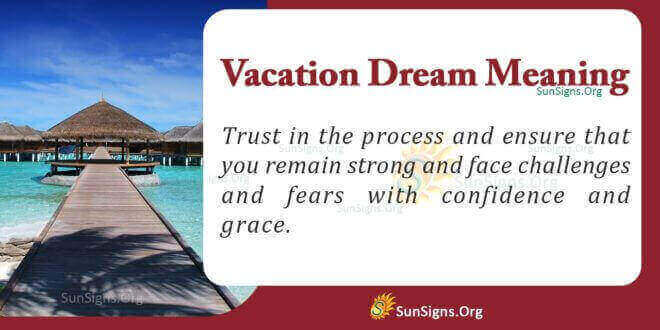 According to the vacation dream symbolism, dreaming of an unexpected vacation is a sign that you will finally find a solution to a problem that has been giving you sleepless nights. It is also a sign that you might get a promotion at your workplace because of a job well done.