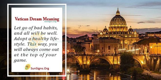 Based on the Vatican dream dictionary, feeling enlightened after leaving the Vatican in your sleep symbolizes positive changes. You will also get the help you need to move your life forward. Enlightenment will enable you to welcome the much-needed changes in your life. The moment you find yourself, your life will be better.