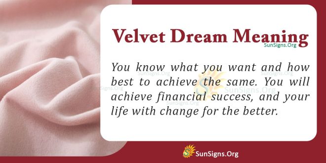 According to the Velvet Dream Dictionary, seeing an old velvet in your dreamscape signifies that your success will suffer because of your pride and ego.