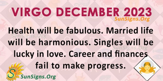 2023 Horoscope for Virgo promises excellent health prospects for individuals in December 2023. Recurring diseases will remain under control and this will provide a major relief. Physical health can be improved father through exercise and a good diet.