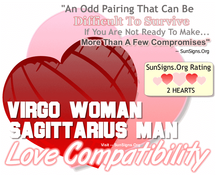 Virgo Woman Compatibility With Sagittarius Man:- The Sagittarius Man needs excitement and variety in his relationships and his Virgo Woman may not be able to give this because she likes consistency and routine. Sagittarius is a fire sign while the Virgo Earth sign may grow weary of the Sagittarius’s need for freedom to pursue multiple interests. She may think him irresponsible while he will think she is boring. It will take a lot of work for these two to compromise and make their relationship work long-term. Continue Reading…