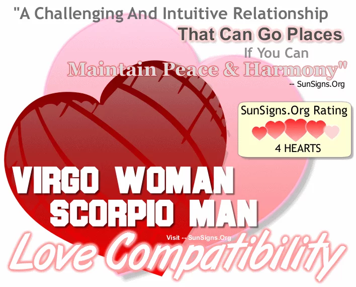 Virgo Woman Compatibility With Scorpio Man:- This can be a challenging union because the Virgo female is more calm and quiet while the Scorpio male can be adventurous and intense. But Earth and Water compatibility can sometimes be a good match if Scorpio can learn to slow down a bit. Also, Virgo may have to let him be in control but she doesn’t like to fight so as long as they can compromise they may be all right. Continue Reading…