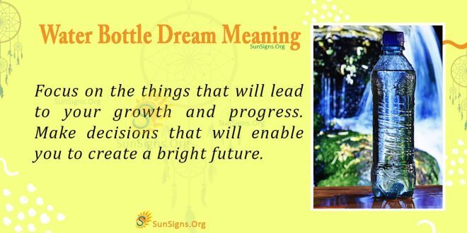 According to the water bottle dream symbolism, dreams about using a water bottle urge you to be self-reliant. Do things that are good for you. Focus on the things that will lead to your growth and progress. Make decisions that will enable you to create a bright future.