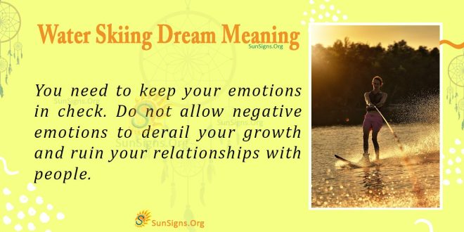 The waterskiing dream symbol signifies that you are heading in the wrong direction in your waking life. You need to stop and examine your life. Take a path that will enable you to achieve success. Focus on the people and things that build you. You might be in distress. Find people to help you get out of tricky situations.