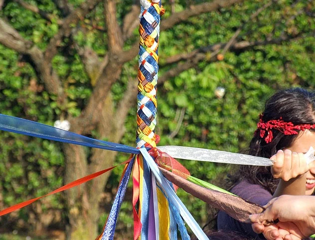 The maypole is a common sight this time of year, the pole itself being a rather blatant phallic symbol. How appropriate that it would be at this stage of God’s life that his staff does begin to rise! The dancers about the maypole are telling a story, for those who know how to see.