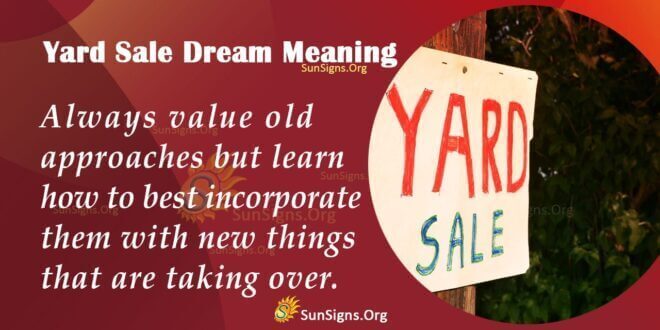 The yard sale dream symbol indicates that you will find new ways and skills to incorporate old ideas into your life. Challenge yourself to become better and use every resource in your arsenal. Always value old approaches, but learn how best to incorporate them with new approaches that are taking over.