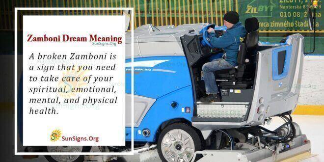 A Zamboni is a machine that smoothens the surface of the ice on a rink. What does dreaming of a Zamboni mean? Seeing a Zamboni in a dream is a sign that you need to work on your relationship with your loved ones since peace is not easy to come by. You have been in conflict for a while, which is not good for either you or your loved ones.